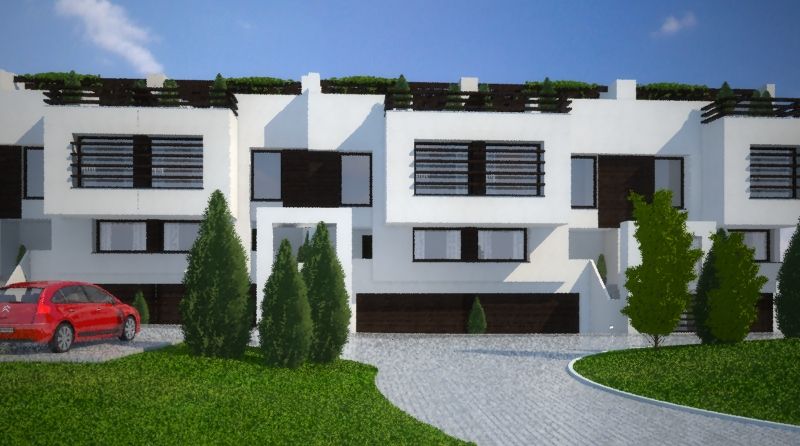 Skrzydło Południowe zostało przez architektów ZAROWNY engineerings zabudowane zmodyfikowanym modelem domu szeregowego "ZengaTM Park". To model "ZengaTM Park Premium".