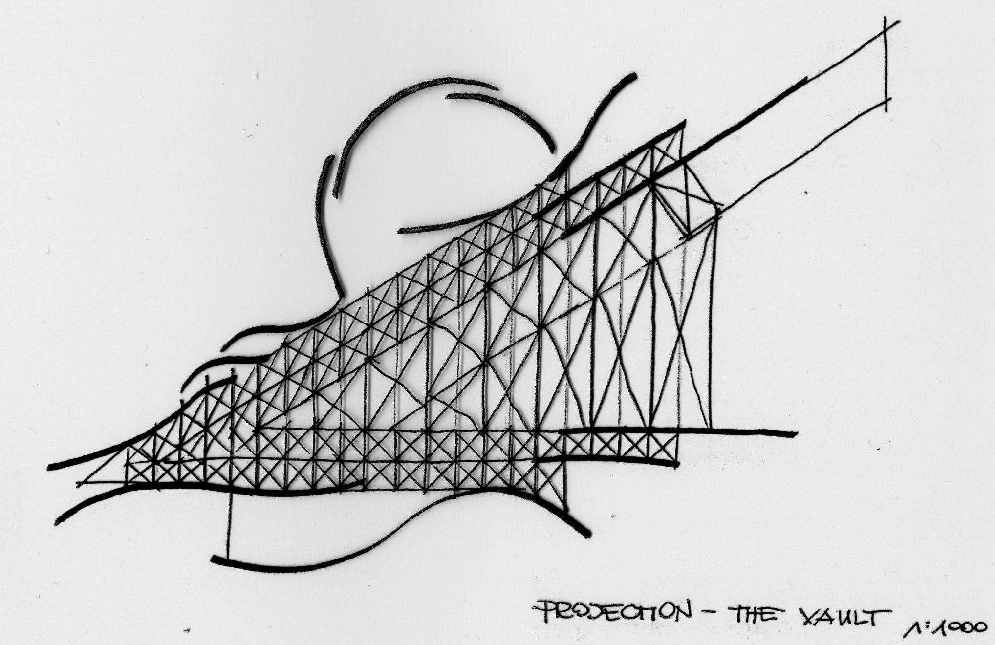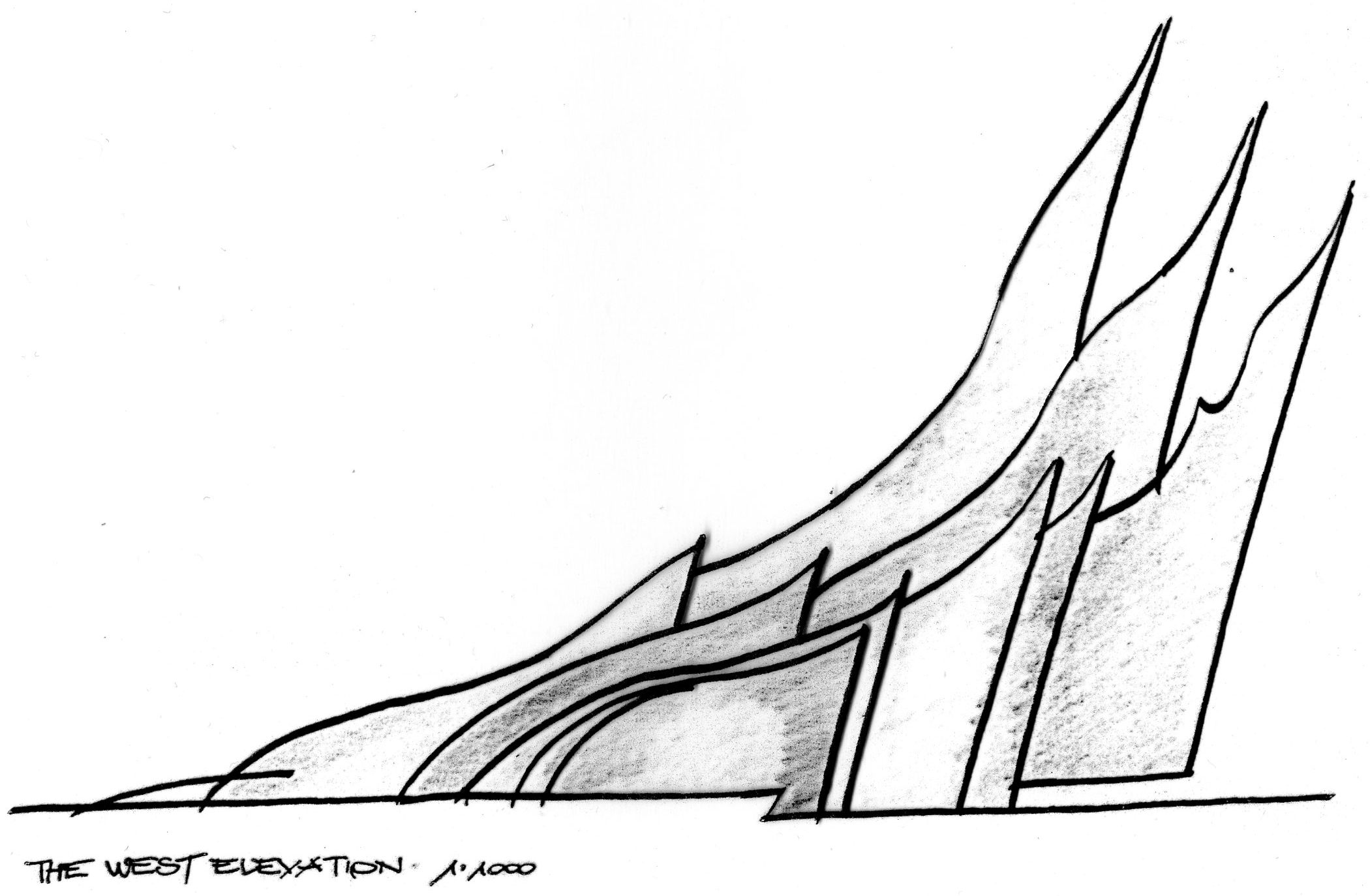 Zlokalizowany na plaży potężny szklany kościół konkatedralny z dziobem zanurzonym częściowo w morzu. Umiejscowiony za prezbiterium chór miał występować na tle rozbijanych o szklany dziób kościoła fal morskich. Umiejscowione nad prezbiterium wieże w kształcie wznoszących się do nieba płomieni rozświetlały ołtarz. Nawa główna i boczne tonęły w typowym dla wczesnego średniowiecza półmroku.