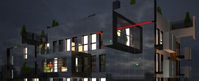 Znajdujące się  na najwyższej kondygnacji wspomniane wcześniej "wiszące ogrody" również będą podświetlone od dołu tak, aby źródło światła było przedwe wszystkim nie widoczne, a w efekcie obmywało stojace w donicach krzewy i drzewa. Będzie to dawało wyjątkowe w nocy doznania tak właścicielom apartamentów na najwyższym pietrze, ale również i wszystkim mieszkającym wokół.